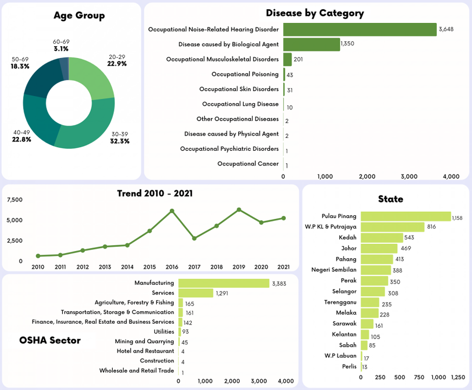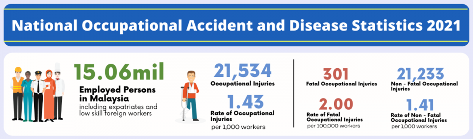 Based on the Occupational Safety and Health Act 1994 (OSHA) Section (Act 514) the highest number of Occupational Injuries 2021 in Malaysia was recorded in Manufacturing Sector at (7,994 cases) followed by Services (4,299 cases) Construction (2,297 cases) and Wholesale and Retail Trade (1,979 cases ) According to Department of Statistics Malaysia ,30th June 2022).